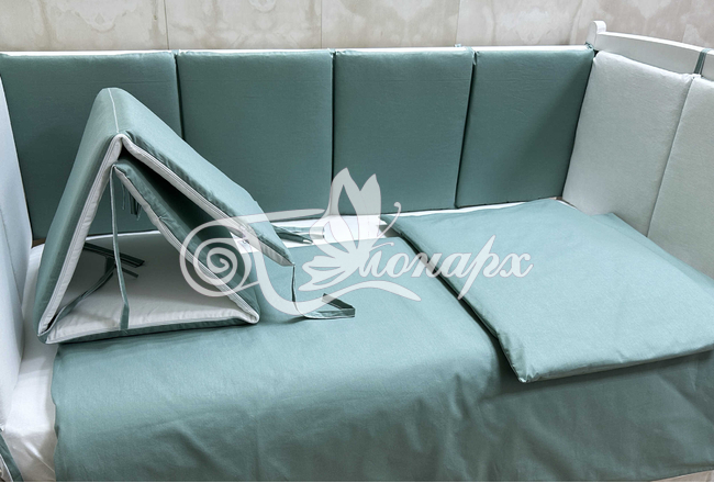 Бортики СО СЪЕМНЫМИ ЧЕХЛАМИ в кроватку: защитят Вашего малыша от ушибов, сквозняков, солнечных лучей и не дадут малышу запутаться в прутьях кроватки.