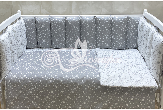 Бортики на замочках в кроватку: защитят Вашего малыша от ушибов, сквозняков, солнечных лучей и не дадут малышу запутаться в прутьях кроватки.
