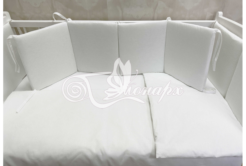 Бортики СО СЪЕМНЫМИ ЧЕХЛАМИ в кроватку: защитят Вашего малыша от ушибов, сквозняков, солнечных лучей и не дадут малышу запутаться в прутьях кроватки. - Простыня на резинке 60х120 см (подходит для стандартной кроватки)