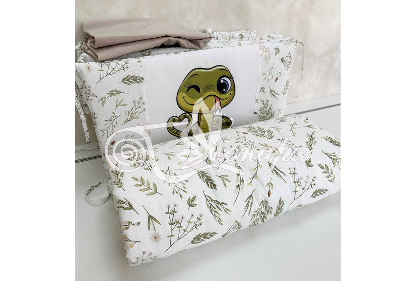 Бортики СО СЪЕМНЫМИ ЧЕХЛАМИ в кроватку: защитят Вашего малыша от ушибов, сквозняков, солнечных лучей и не дадут малышу запутаться в прутьях кроватки. - Простыня на резинке 60х120 см (подходит для стандартной кроватки)