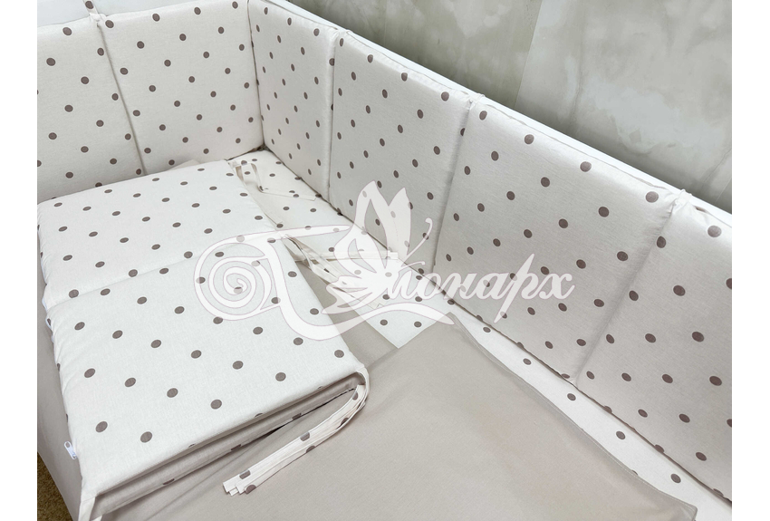 Бортики СО СЪЕМНЫМИ ЧЕХЛАМИ в кроватку: защитят Вашего малыша от ушибов, сквозняков, солнечных лучей и не дадут малышу запутаться в прутьях кроватки. - Простыня на резинке 60х120 см (подходит для стандартной кроватки)