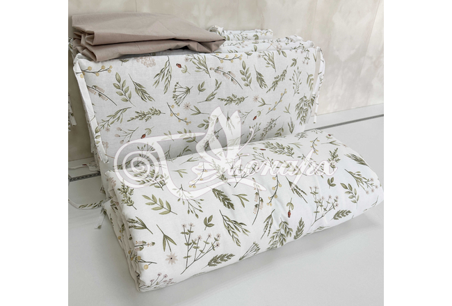 Бортики СО СЪЕМНЫМИ ЧЕХЛАМИ в кроватку: защитят Вашего малыша от ушибов, сквозняков, солнечных лучей и не дадут малышу запутаться в прутьях кроватки. - Простыня на резинке 60х120 см (подходит для стандартной кроватки)