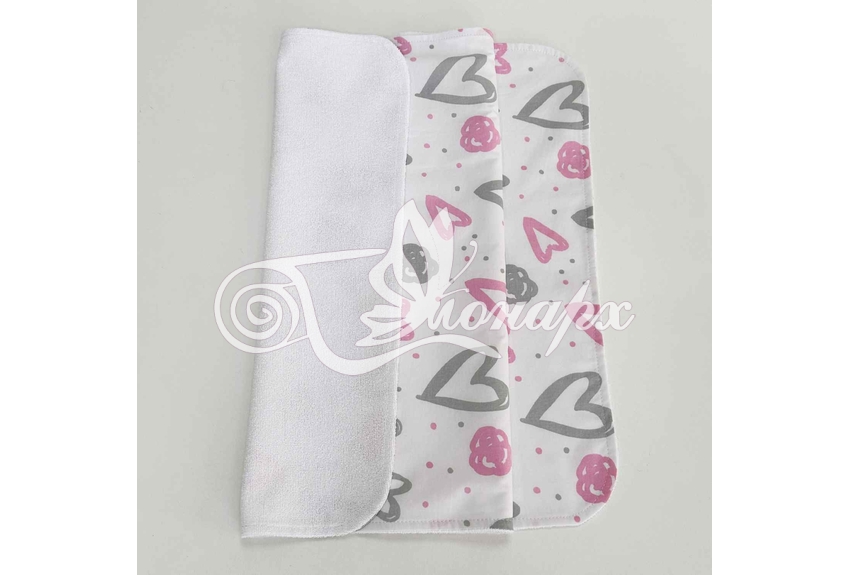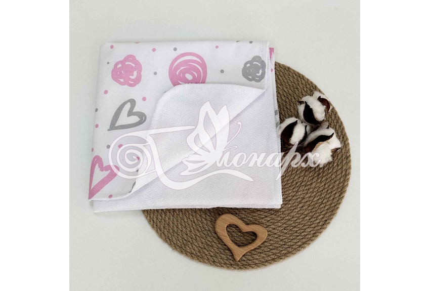 - Верхний слой – мулитон (изготовлена из - мягкой махры и непромокаемого слоя ПВХ). Благодаря такому строению на пеленке комфортно лежать (в отличие от клеенчатого или полиэтиленового непромокаемого слоя).