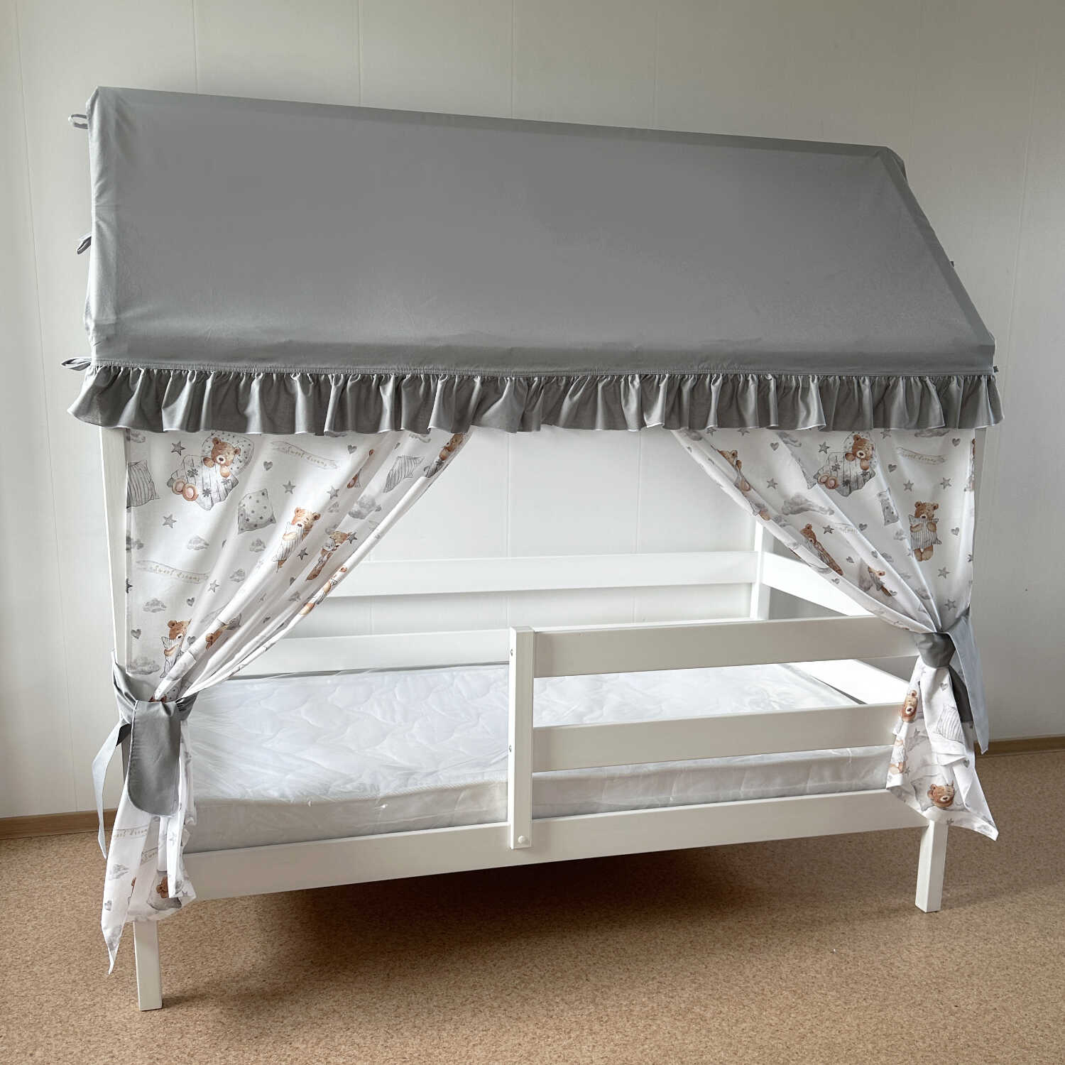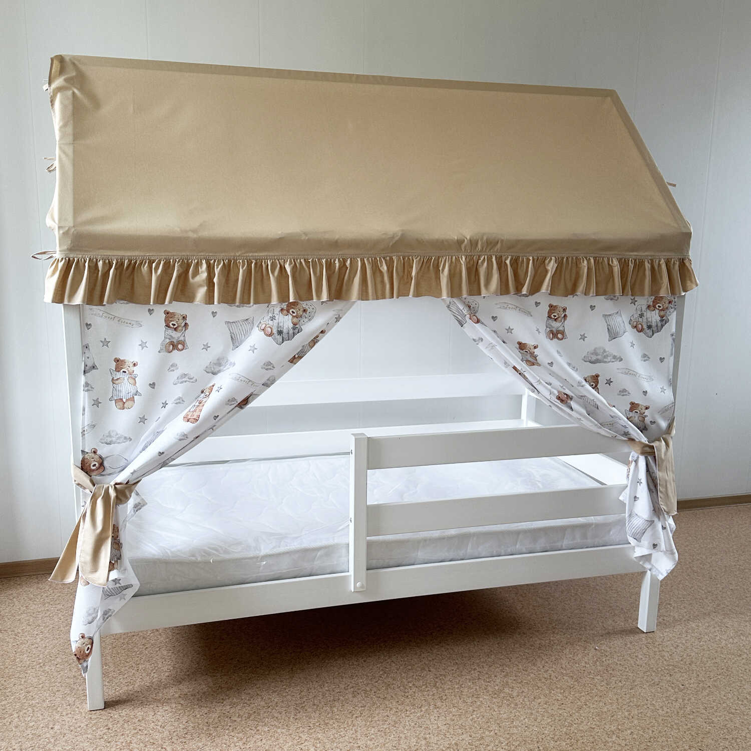 Крыша и шторы для кроватки домика ТД-1