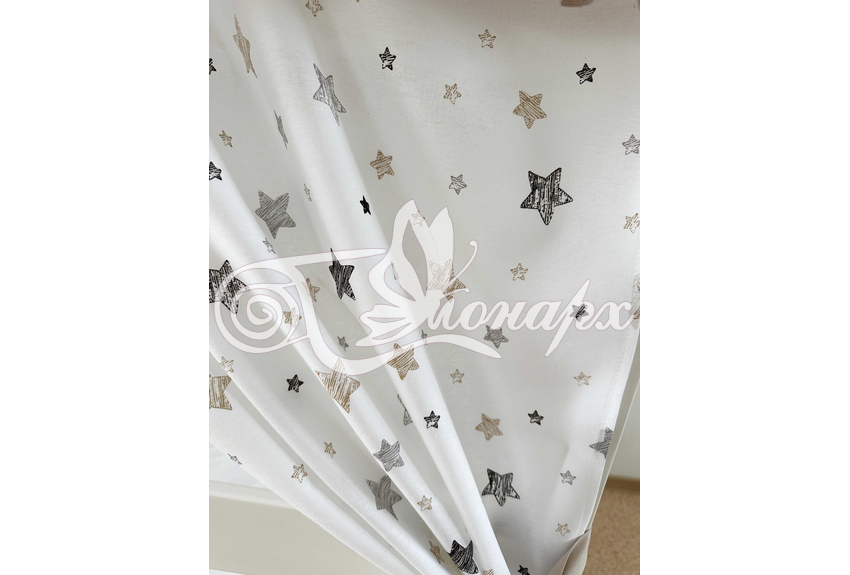 ширина - 82 см. - Занавески с завязками (по 4 завязки на каждой занавеске) на боковые стороны кроватки 2 шт.: