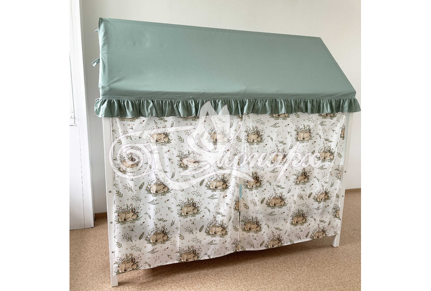 - Крыша текстильная на завязках (10 завязок) для кроватки домика: