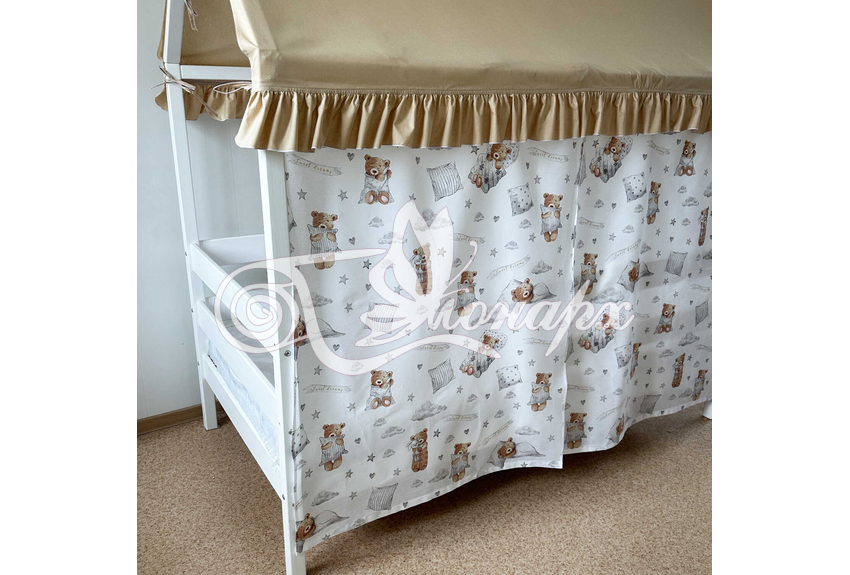 Крыша и шторы для кроватки домика ТД-51 купить в Чите.Теги: комплект в кроватку домик, текстиль для домика, крыша для домика