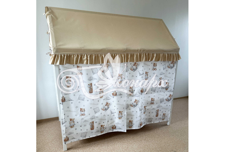 - Крыша текстильная на завязках (10 завязок) для кроватки домика: